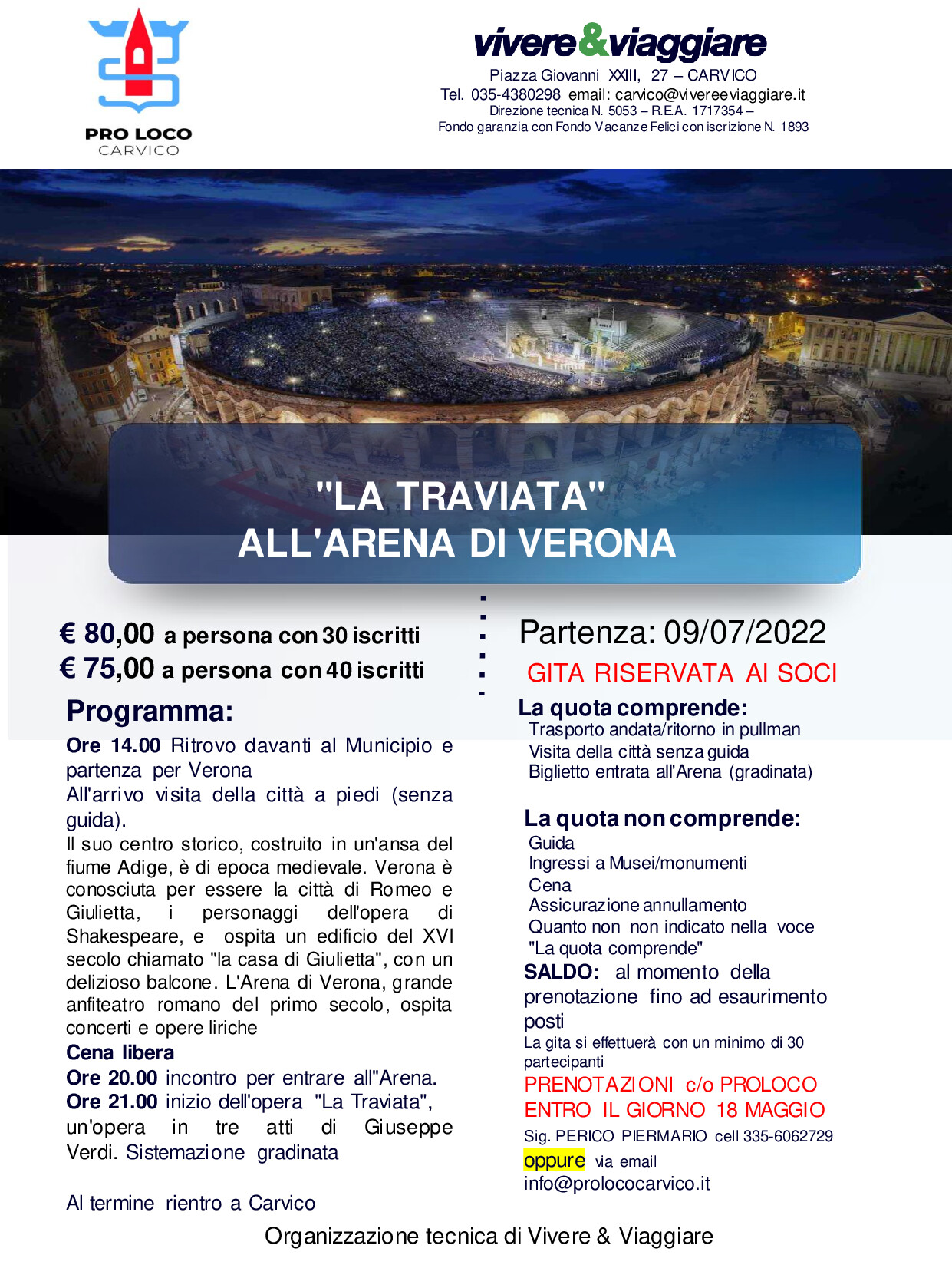 Ore 14.00 Ritrovo davanti al Municipio e partenza per Verona.