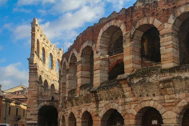 All'arrivo visita della città a piedi (senza guida). Il suo centro storico, costruito in un'ansa del fiume Adige, è di epoca medievale. Verona è conosciuta per essere la città di Romeo e Giulietta, i personaggi dell'opera di Shakespeare, e ospita un edificio del XVI secolo chiamato "la casa di Giulietta", con un delizioso balcone. L'Arena di Verona, grande anfiteatro romano del primo secolo, ospita concerti e opere liriche.