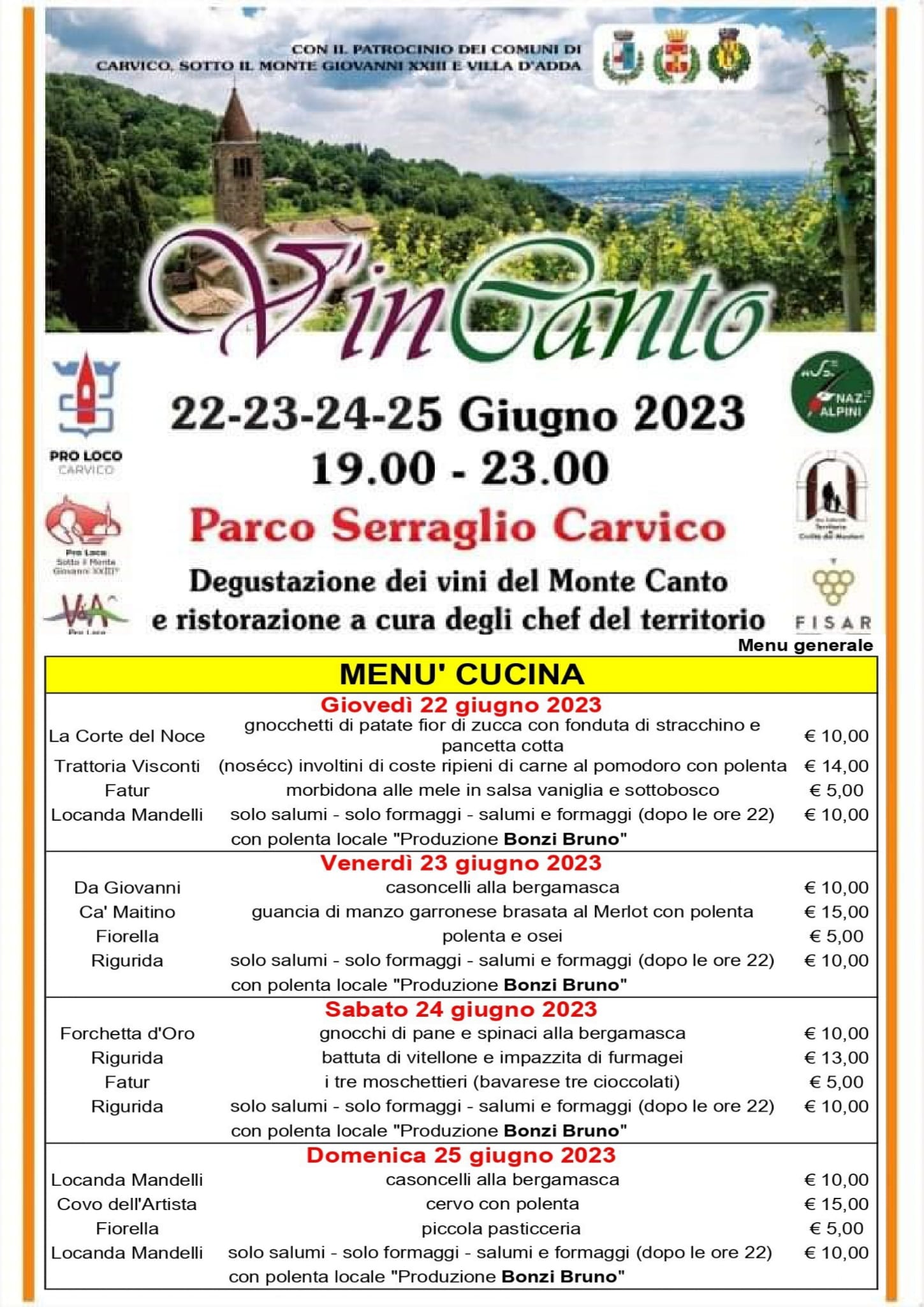 VinCanto, degustazione dei vini del Monte Canto e ristorazione a cura degli chef del territorio.